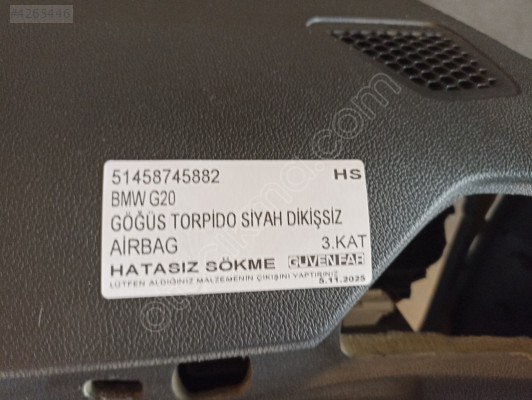 BMW G20 GÖĞÜS TORPİDO SİYAH DİKİŞSİZ AİRBAG 51458745882 HS