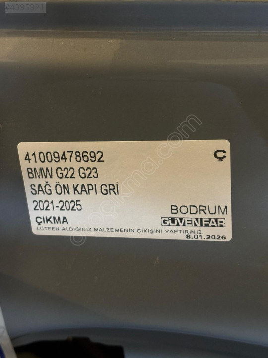 BMW G22 G23 SAĞ ÖN KAPI GRİ 2021-2025 41009478692 Ç