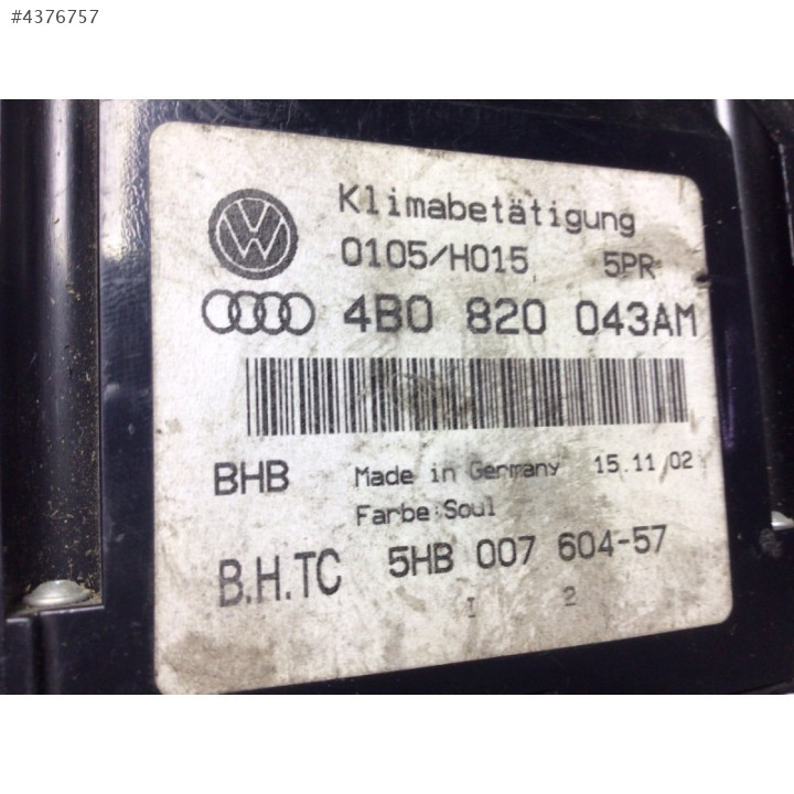 Audi A6 Klima Kontrol Paneli,Audi S6 Klima Kontrol Paneli,4B0820043AM,4B0 820 043 AM,5HB007604-57,5HB 007 604-57,5HB 007 604 57,5HB00760457