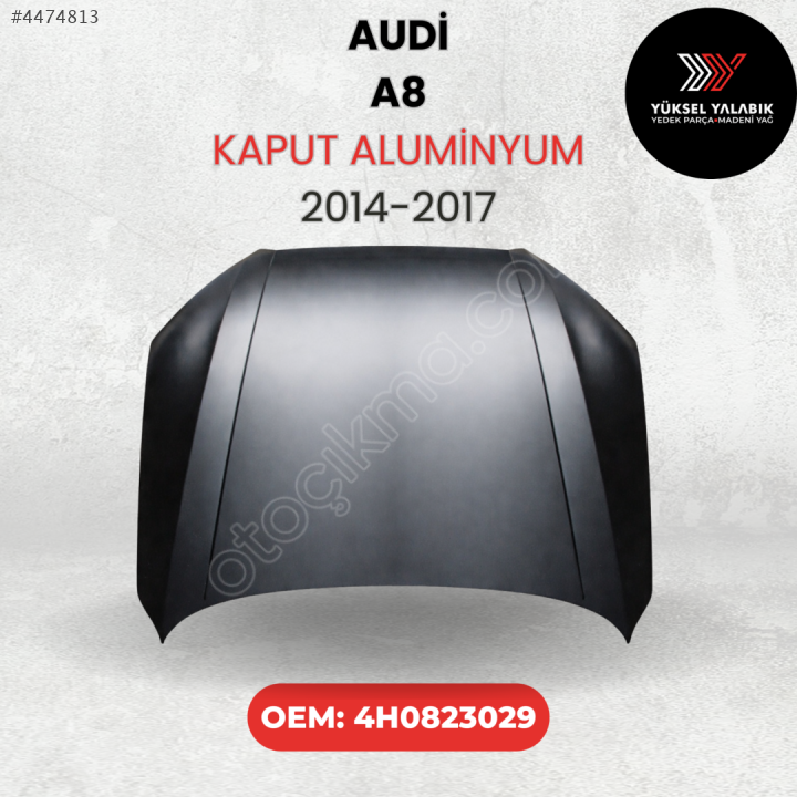 Audi A8 2014–2017 uyumlu alüminyum kaput. OEM: 4H0823029. Hafif ve dayanıklı yapısıyla birebir uyum sağlar. Boyasız gönderilir, montaja hazırdır.