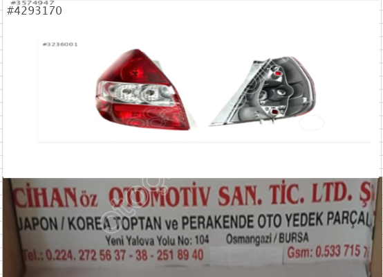 CİHANÖZ OTOMOTİV BURSA JAPON / KOREA MEKANİK-KAPORTA OTO YEDEK PARÇA