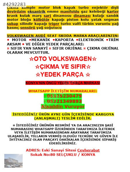 ☆ İSTEDİĞİNİZ ÜRÜNÜN RESMİNİ YA DA ARACINIZIN ŞASİ NUMARASINI WHATSAPP ÜZERİNDEN TARAFIMIZA İLETEREK VEYA İLETİŞİM NUMARASINDAN ARAYARAK TARAFIMIZA ULAŞABİLİR, YILLARIN VERMİŞ OLDUĞU TECRÜBE VE GÜVEN İLE İHTİYACINIZ OLAN PARÇAYI DAKİKALAR İÇERİSİNDE SİPARİŞ EDEBİLİRSİNİZ.