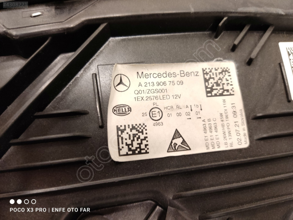 MERCEDES E SERİSİ W213 E350 E300 E350 SOL FAR ORJİNAL HATASIZ - 1