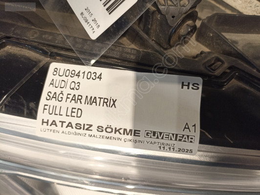 AUDİ Q3 SAĞ FAR MATRİX FULL LED 8U0941034 HS