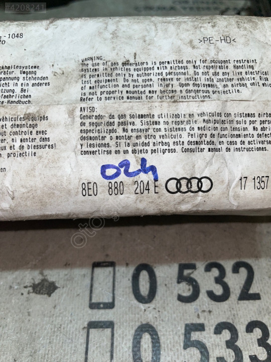 ÇIKMA AUDI A4 8E0 880 204 E 8E0880204E YOLCU AIRBAG