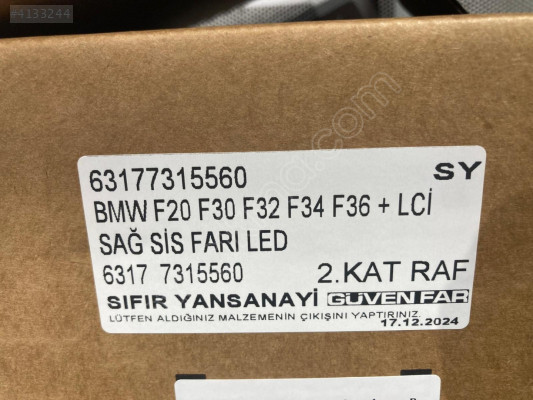BMW F20 F30 F32 F34 F36 + LCİ SAĞ SİS FARI LED 7315560 6317731556