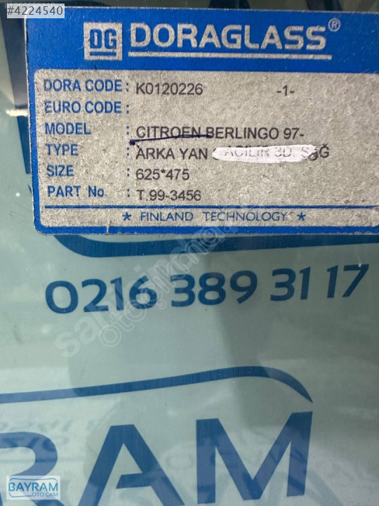 CITROEN BERLİNGO ARKA YAN AÇILIR CAM SAĞ 97-
