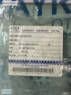ISUZU D-MAX ÖN KAPI CAMI SAĞ 2012-