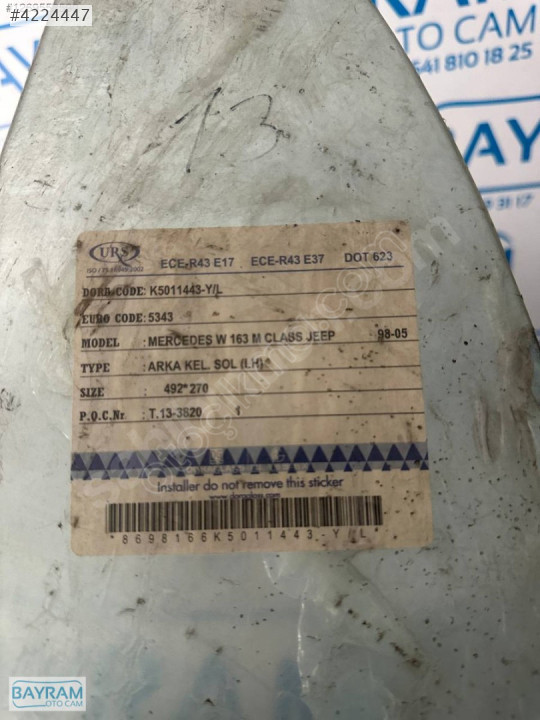 MERCEDES W163 M CLASS ARKA KELEBEK SOL 98-05