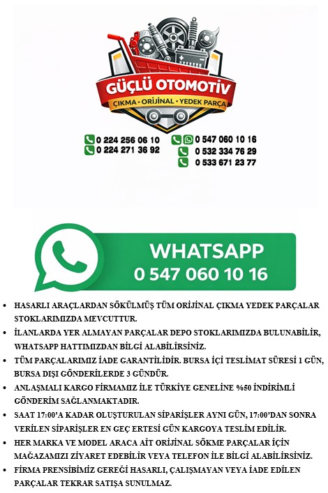ARAÇLARINIZIN ORJİNAL YEDEK PARÇALARI İÇİN FİYAT VE BİLGİ ALABİLİRSİNİZ.