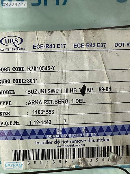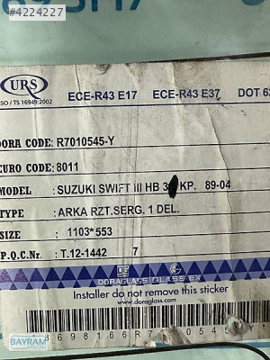 SUZUKİ SWİFT 3KP ARKA CAM 89-04