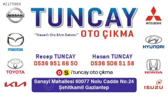 MARKALI ARAÇLARIN ÇIKMA ORJİNAL VE YEDEK PARÇALARI MEVCUTTUR.