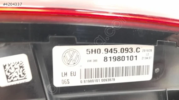 5H0945093C .5H0945093.ORJİNAL SOL İÇ STOP LEDLİ GOLF 8