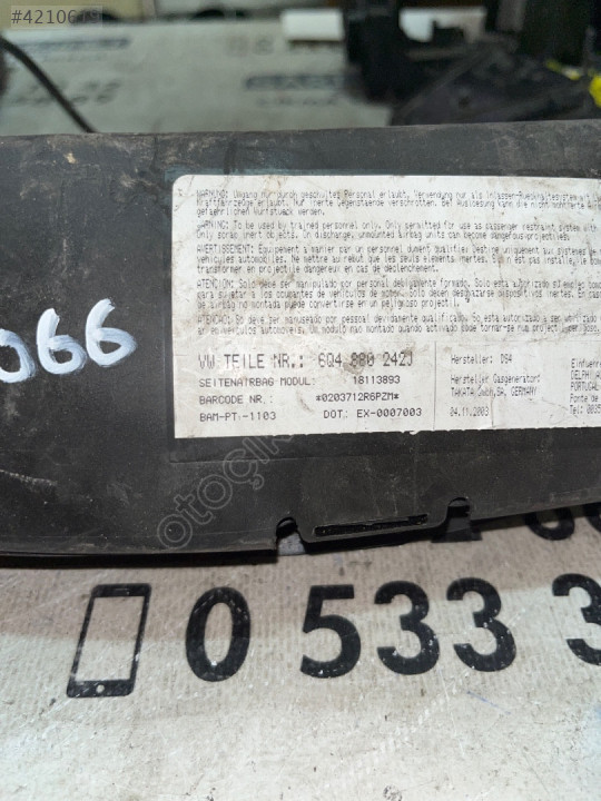 ÇIKMA VW POLO 6Q4 880 242J 6Q4880242J SAĞ YOLCU KOLTUK AIRBAG