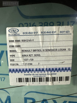 RENAULT SYMBOL 4/DACİA LOGAN ARKA CAM 2012-
