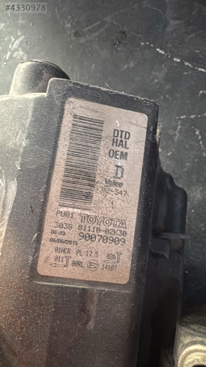 TOYOTA AURİS MERCEKLİ SAĞ FAR 90070909