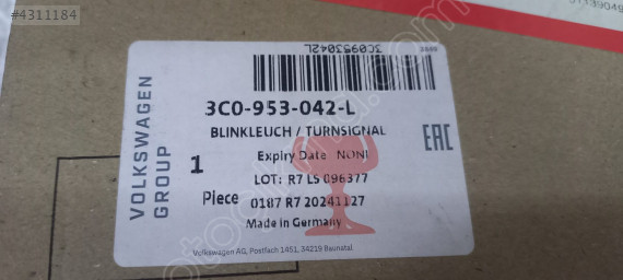 VW Passat sağ sinyal OEM 3C0953042L sıfır orijinal