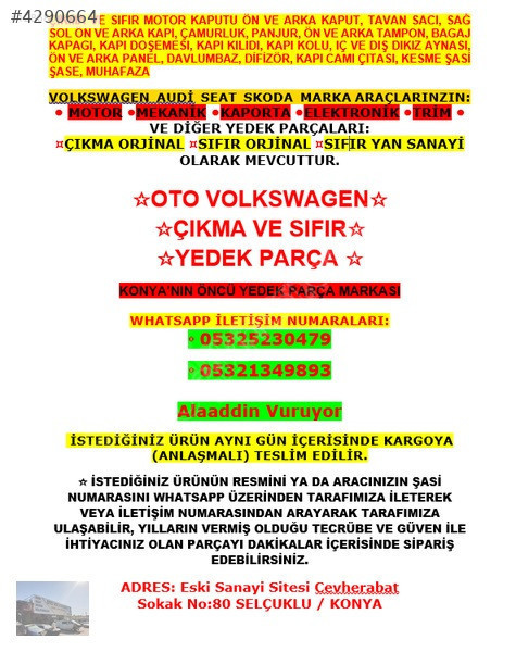 ☆ İSTEDİĞİNİZ ÜRÜNÜN RESMİNİ YA DA ARACINIZIN ŞASİ NUMARASINI WHATSAPP ÜZERİNDEN TARAFIMIZA İLETEREK VEYA İLETİŞİM NUMARASINDAN ARAYARAK TARAFIMIZA ULAŞABİLİR, YILLARIN VERMİŞ OLDUĞU TECRÜBE VE GÜVEN İLE İHTİYACINIZ OLAN PARÇAYI DAKİKALAR İÇERİSİNDE SİPARİŞ EDEBİLİRSİNİZ.