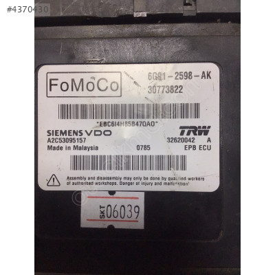 Volvo XC40 Elektronik E-Fren Kontrol Modülü,6G91-2598-AK,6G91 2598 AK,6G912598AK,30773822